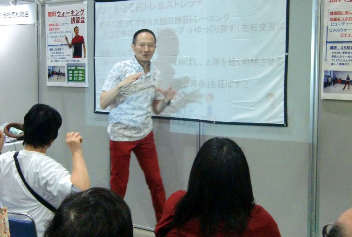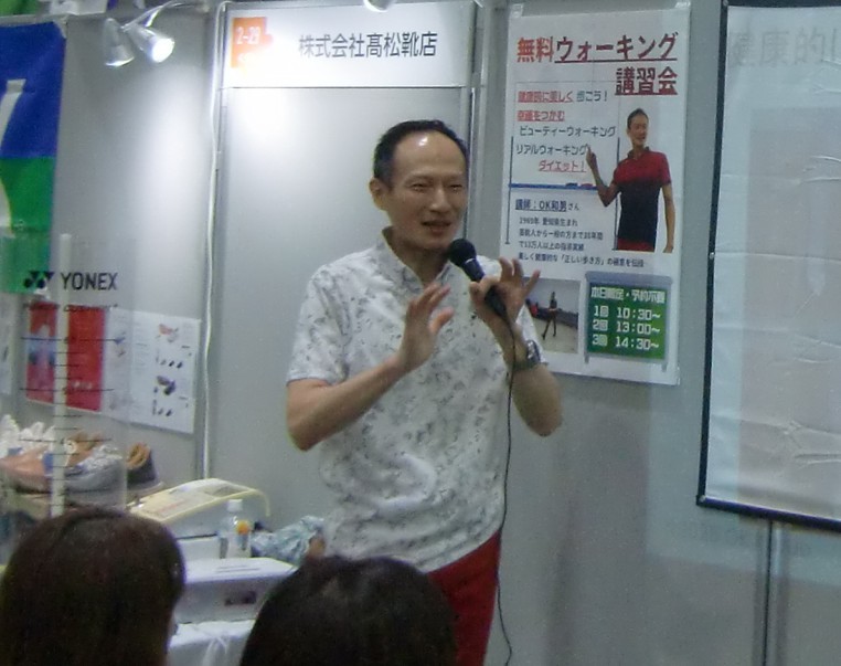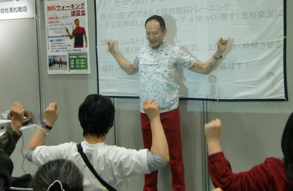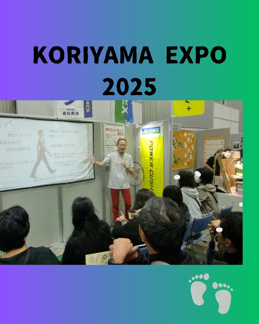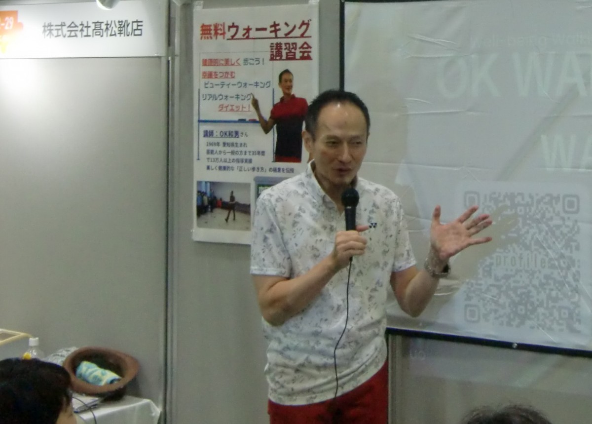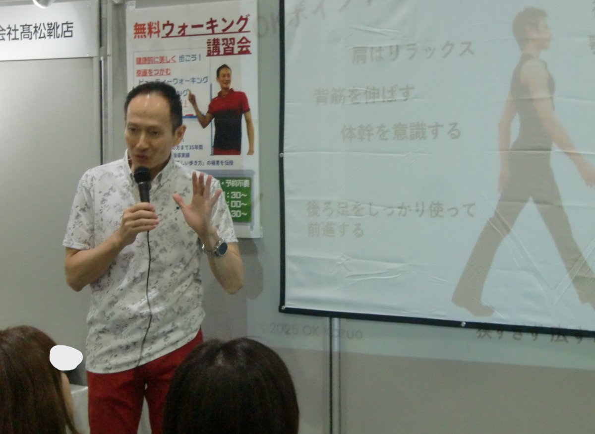 令和7年10月11日(土)、福島県郡山市のビッグパレットふくしまで開催された「こおりやま産業博-KORIYAMA EXPO2025-」。150以上の企業・団体が出展する郡山市最大級の産業博覧会の【髙松靴店さんのブース内特設ステージ】にて、OK和男のOKウォーク講習会「健康的に美しく歩こう!」3ステージ(10:30~、13:00~、14:30~)登壇させていただきました。
