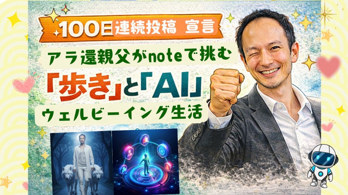 【100日連続投稿宣言】アラ還親父がnoteで挑む「歩き」と「AI」のウェルビーイング生活