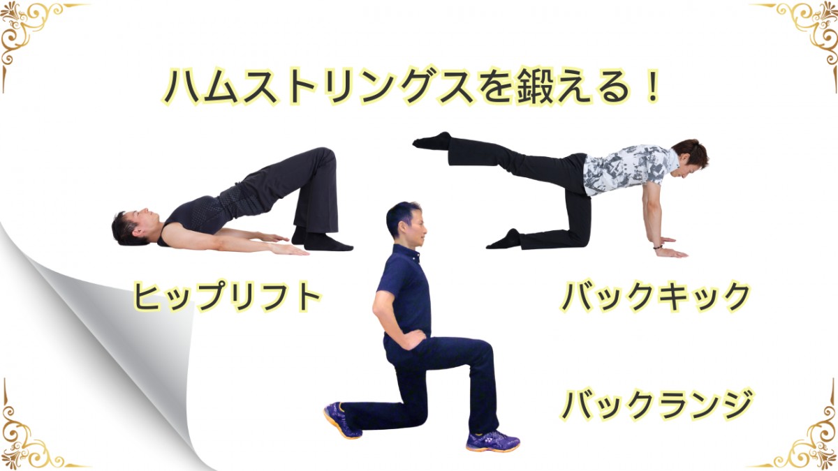 これらのトレーニングで腿の後ろ側、ハムストリングスを意識して鍛えることができます。