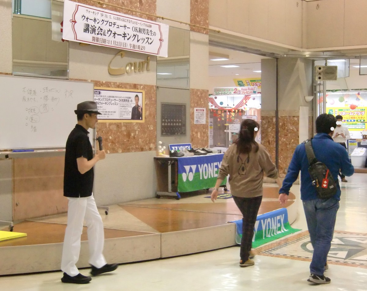 去る2025年11月2日(日曜日)、千葉県東金市の「シューズヨシヤ東金サンピア店」サンピア 1階ステージコートにて、「OKウォーク🄬!ウォーキング講演会」が開催されました!
